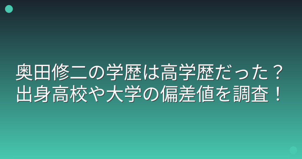 奥田修二の学歴は高学歴だった?出身高校や大学の偏差値を調査!