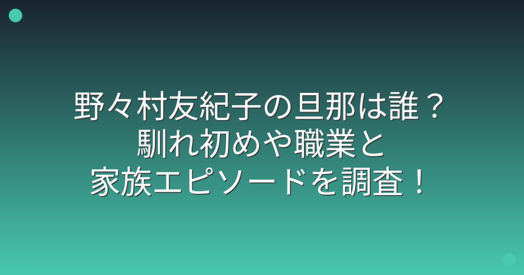 野々村友紀子の旦那は誰?馴れ初めや職業と家族エピソードを調査!
