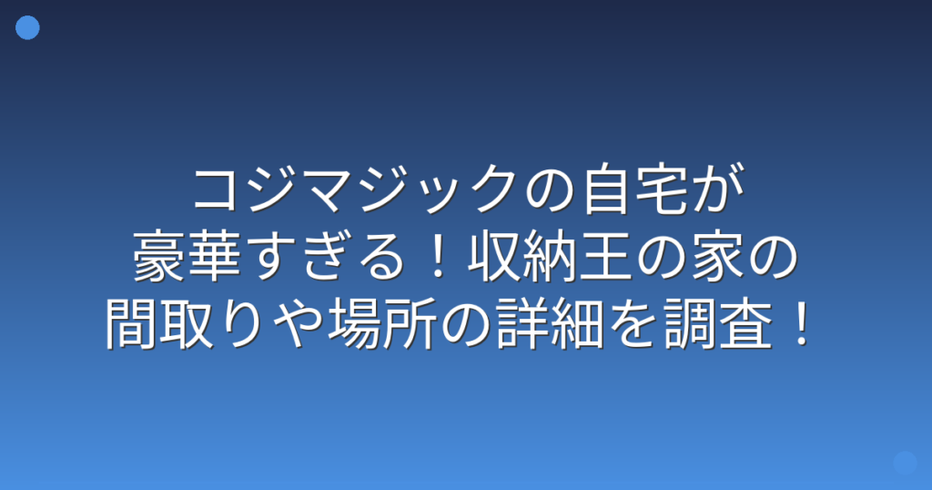 収納王として知られるコジマジックさんの自宅が、ファンの間で話題になっていますね。 収納のプロフェッショナルとして活躍するコジマジックさんですが、ご自身の自宅はどのような家なのか気になる方も多いのではないでしょうか。 そこで今回は、コジマジ... -