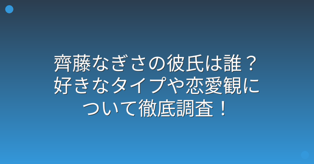 齊藤なぎさの彼氏は誰?好きなタイプや恋愛観について徹底調査!