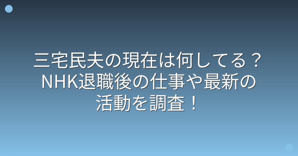 三宅民夫の現在は何してる?NHK退職後の仕事や最新の活動を調査!