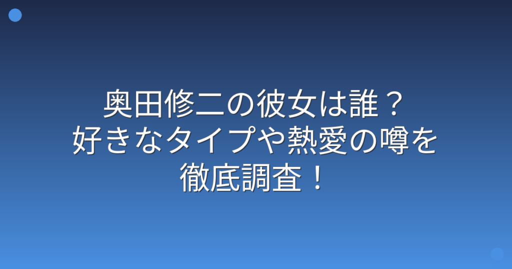 奥田修二の彼女は誰?好きなタイプや熱愛の噂を徹底調査!