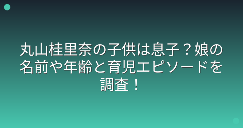 丸山桂里奈の子供は息子?娘の名前や年齢と育児エピソードを調査!