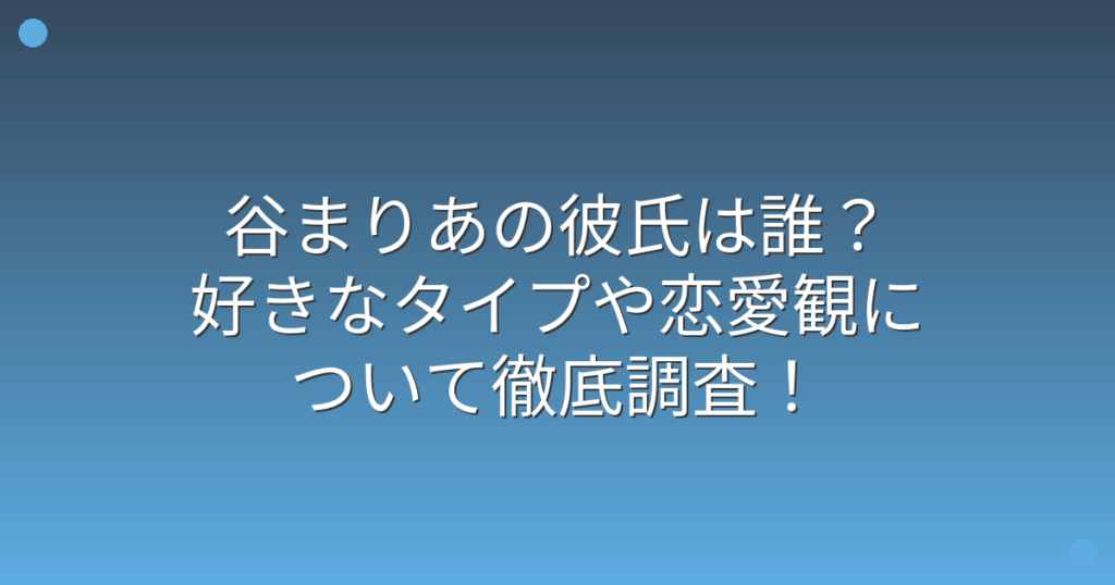 谷まりあの彼氏は誰?好きなタイプや恋愛観について徹底調査!