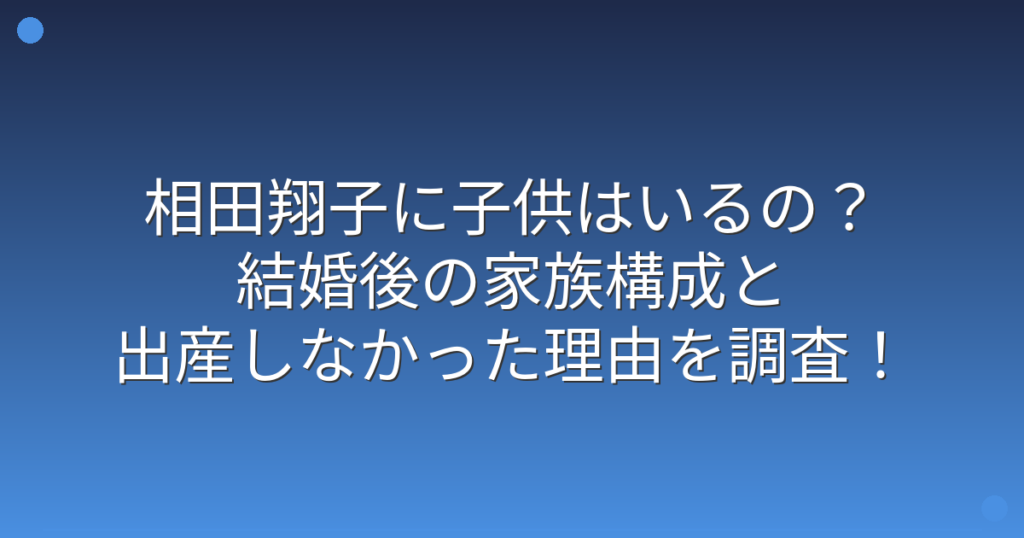 相田翔子に子供はいるの?結婚後の家族構成と出産しなかった理由を調査!