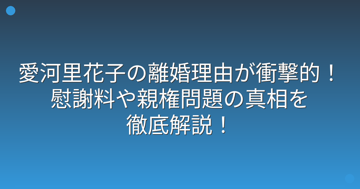 愛河里花子さんは女優として高い収入を得ていましたが、元夫も会社経営者として安定した収入があったため、財産分与は円滑に進んだようです。