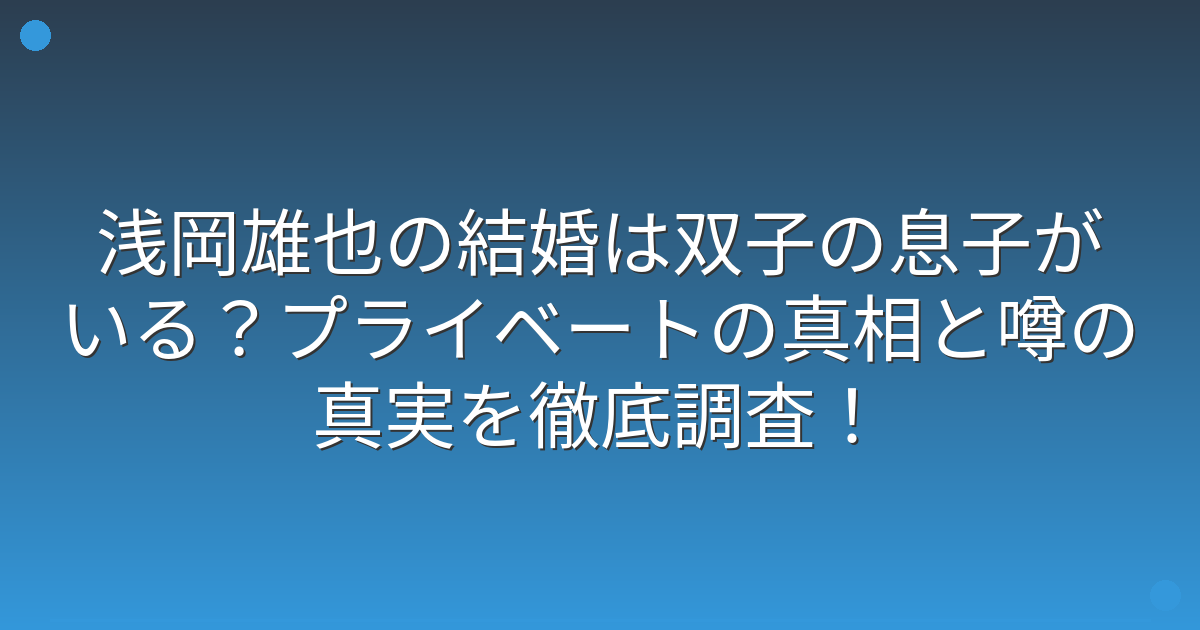 今回は、浅岡雄也さんの結婚や双子の息子の噂、そしてプライベートについてお伝えしてきました。