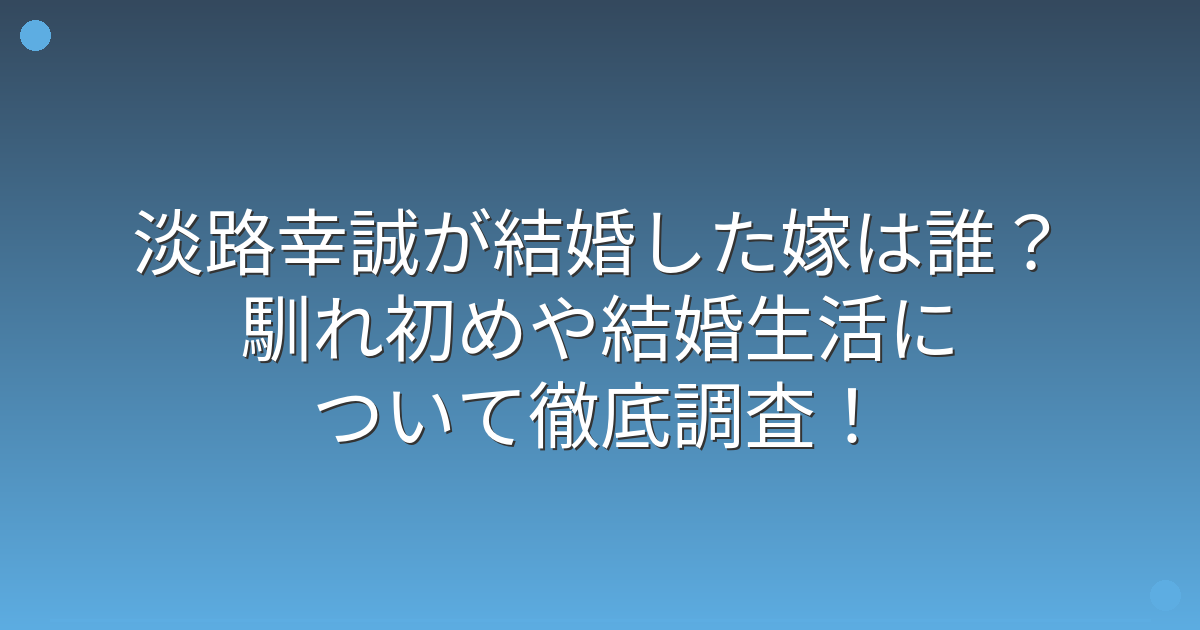 2022年に結婚を発表した淡路さんですが、お相手の女性や馴れ初めについて気になっている方も多いのではないでしょうか。