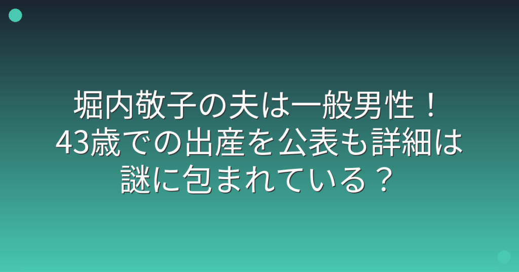 堀内敬子の夫は一般男性!43歳での出産を公表も詳細は謎に包まれている?