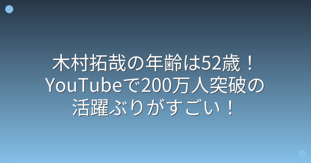 木村拓哉の年齢は52歳!YouTubeで200万人突破の活躍ぶりがすごい!