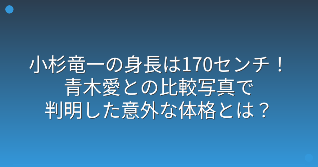 小杉竜一の身長は170センチ!青木愛との比較写真で判明した意外な体格とは?