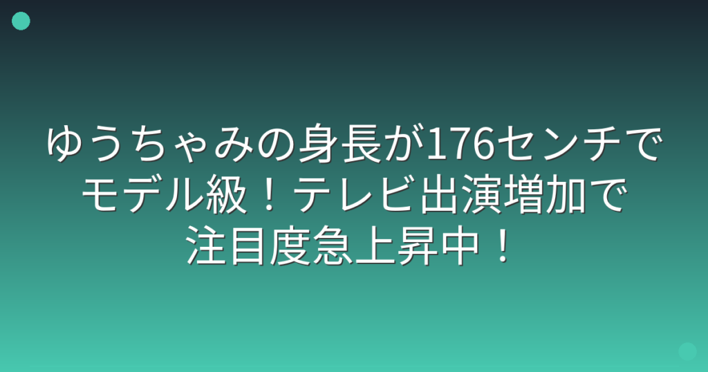 今、テレビやファッション誌で大活躍のゆうちゃみさんが注目を集めています。 特に彼女の176センチという抜群のスタイルが話題になっているようですね。 そこで今回は、ゆうちゃみさんの身長やスタイル、モデルとしての活動について詳しく見ていきましょう... -