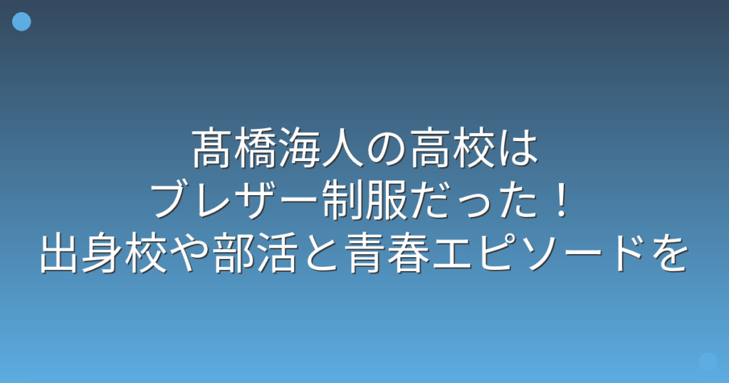 髙橋海人の高校はブレザー制服だった!出身校や部活と青春エピソードを調査!