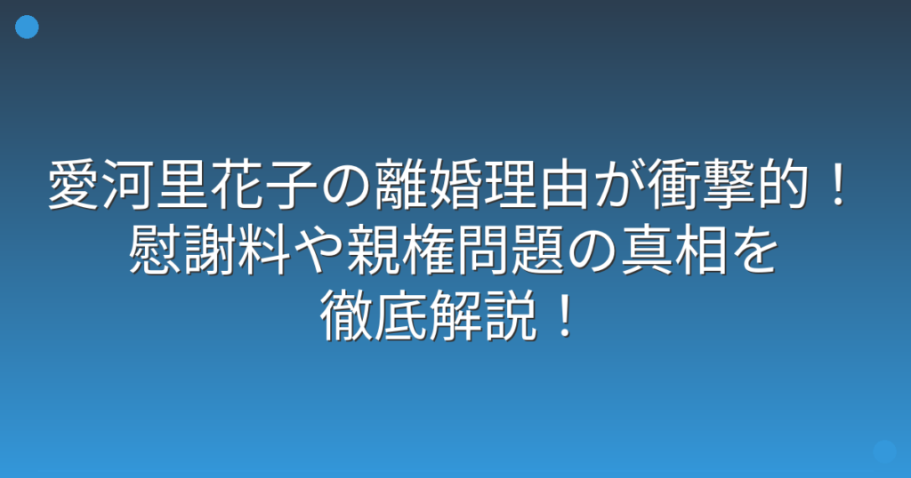 愛河里花子の離婚理由が衝撃的!慰謝料や親権問題の真相を徹底解説!
