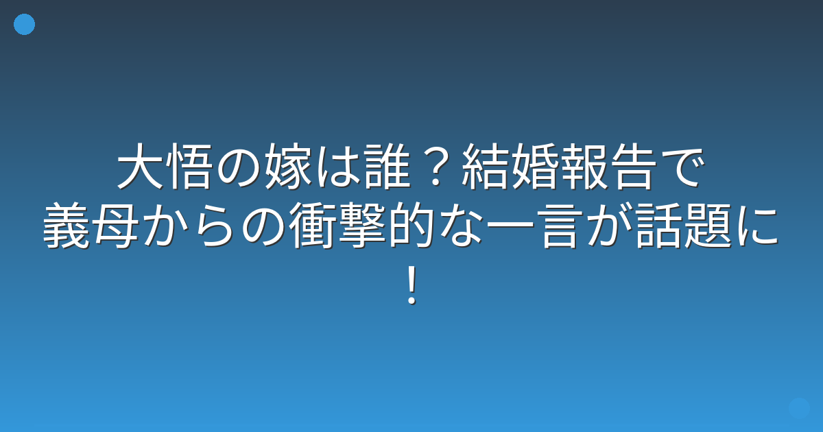 そこで今回は、大悟さんの結婚報告エピソードや、妻との関係について詳しく見ていきましょう!