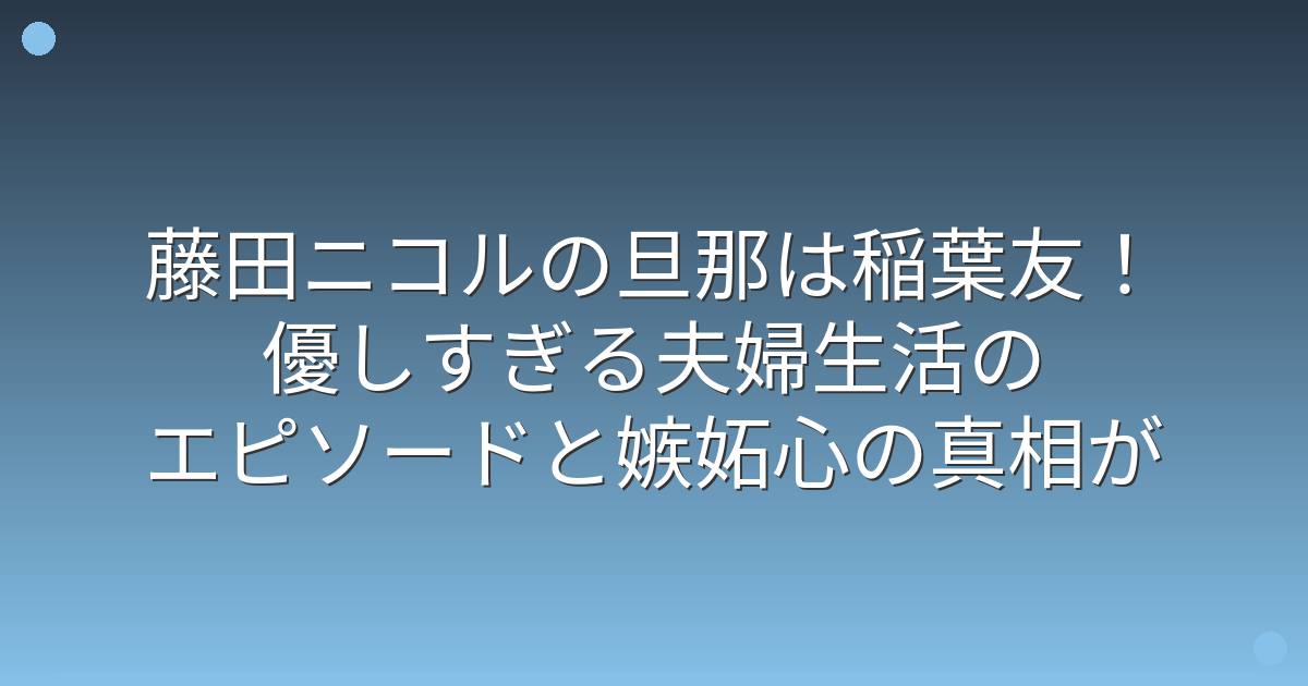 藤田ニコルさんは、夫である稲葉友さんのことを「凄い優しい」と公言しており、その言葉からも深い信頼関係が感じられます。