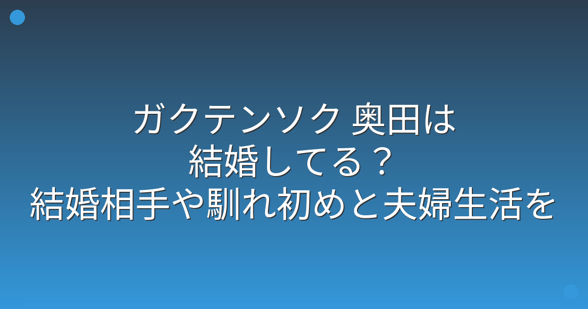 そこで今回は、ガクテンソク 奥田さんの結婚の有無や結婚相手、馴れ初めについて詳しく見ていきましょう!