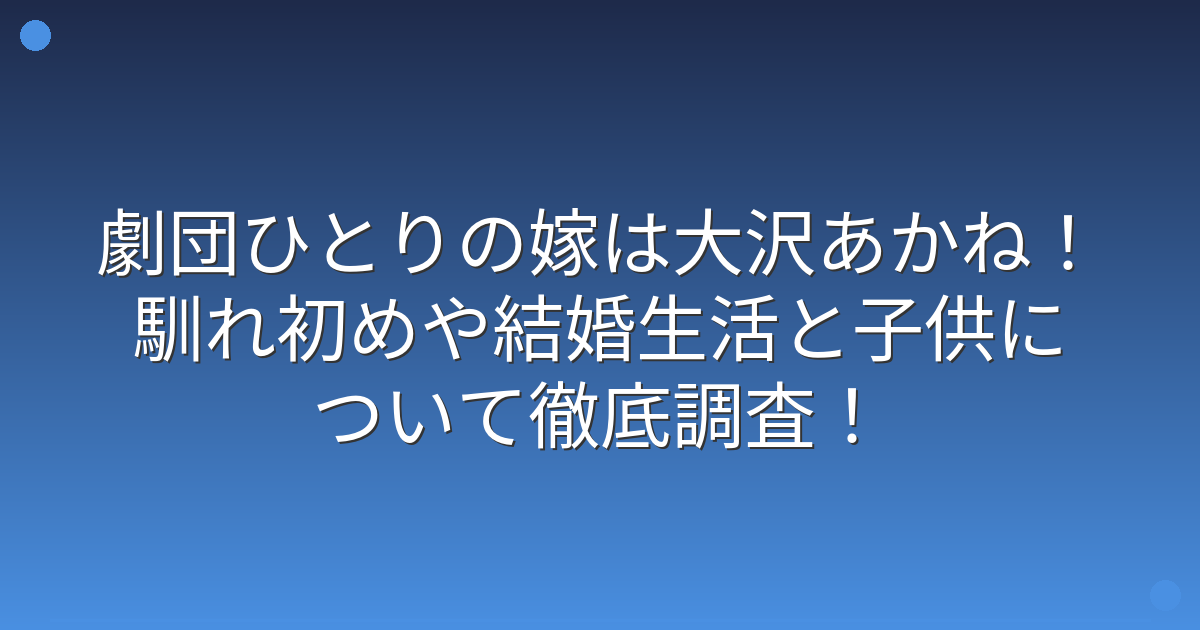 今回は、劇団ひとりさんの嫁である大沢あかねさんとの馴れ初めや結婚生活、お子さんについてお伝えしてきました。