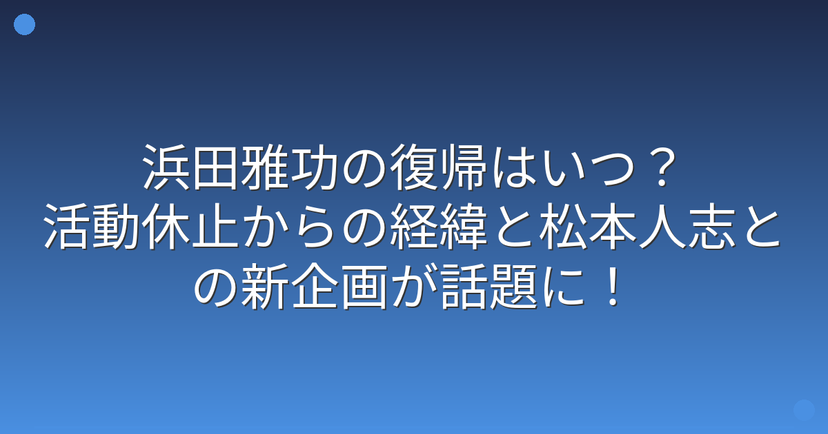 そこで今回は、浜田雅功さんの復帰時期や活動内容、さらに松本人志さんとの新企画についても詳しくお伝えしていきましょう!