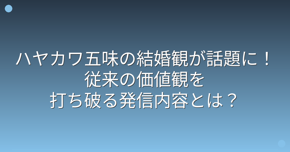 ハヤカワ五味の結婚観が社会に与える影響