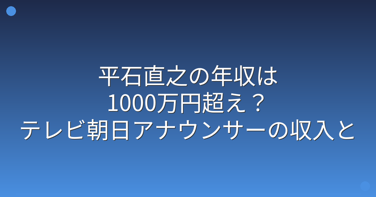 平石直之さんの収入源について、主なものはテレビ朝日のアナウンサーとしての給料です。