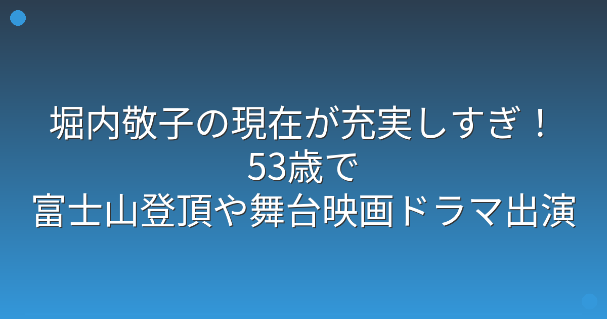 堀内敬子の現在が充実しすぎ!53歳で富士山登頂や舞台映画ドラマ出演が話題に?