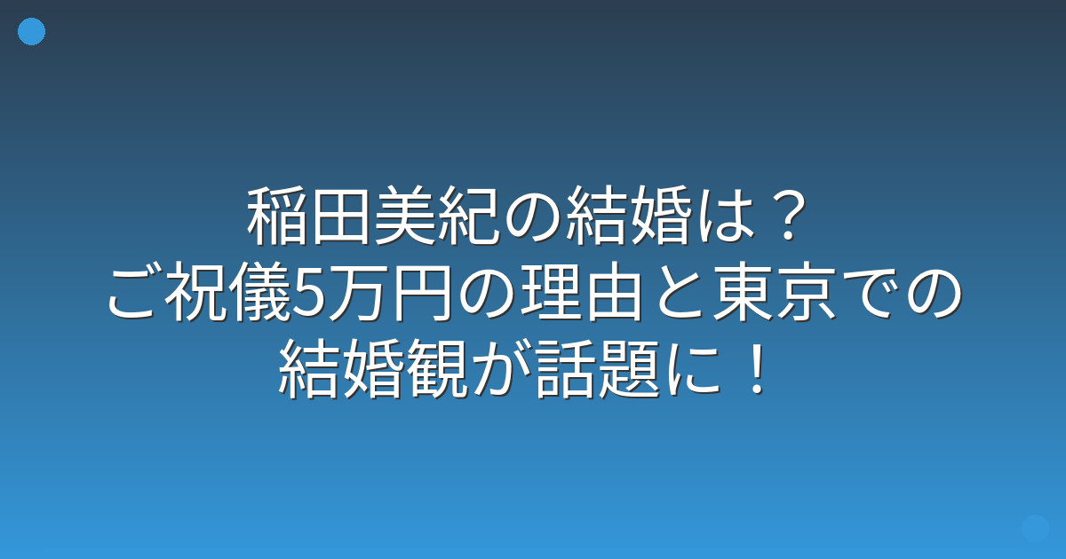 そこで今回は、稲田美紀さんの結婚に関する情報や、話題となったご祝儀事情、そして結婚観について詳しく見ていきましょう!