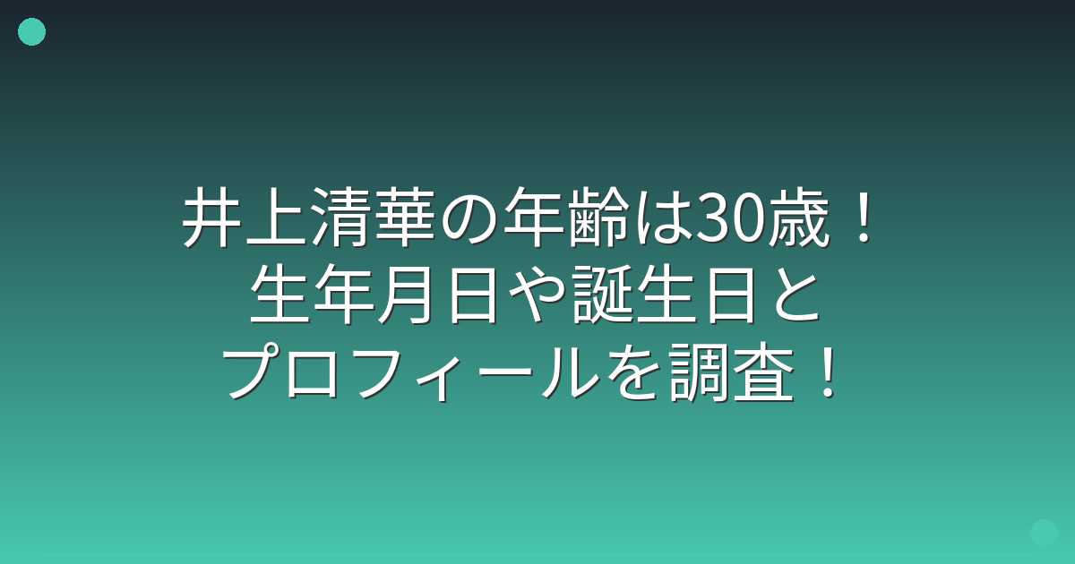 そこで今回は、井上清華さんの年齢や生年月日、誕生日などのプロフィールについて詳しく見ていきましょう!