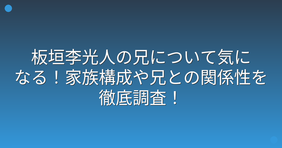 しかし、複数の報道によると、板垣李光人さんの兄に関する具体的な情報は公開されていないことが分かりました。