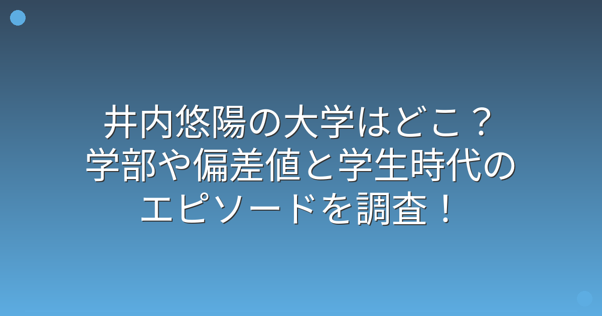 そこで今回は、井内悠陽さんの大学や学部、偏差値、そして学生時代のエピソードについて詳しく見ていきましょう!