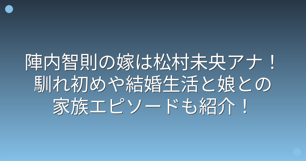 今回は、陣内智則さんの嫁である松村未央アナウンサーとの馴れ初めや結婚生活、そして娘との家族エピソードについてお伝えしてきました。
