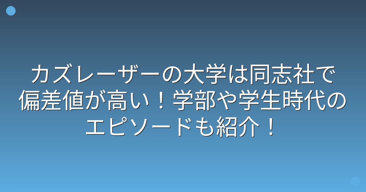 カズレーザーさんは同志社大学商学部を卒業されており、偏差値60から62という高学歴の持ち主であることがわかりました。