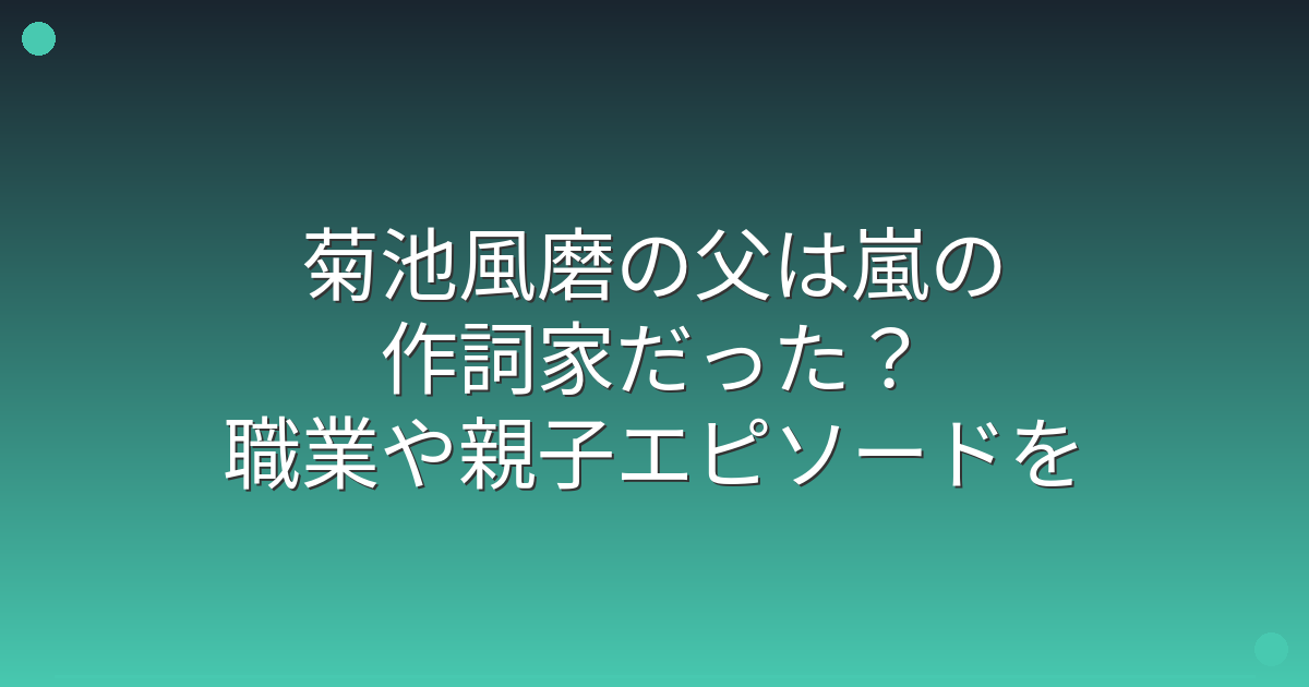 菊池風磨さんの父親は、シンガーソングライターの菊池常利さんで、嵐のデビュー曲『A・RA・SHI』の作詞を手掛けた著名な音楽家であることが分かりました。
