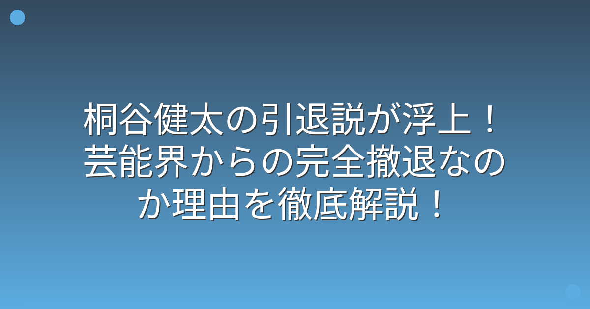 まず、桐谷健太さんの引退説について、現時点での真相をお伝えします。
