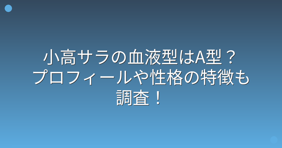 血液型の特徴を知ることで、小高サラさんの魅力をより深く理解できるのではないでしょうか。