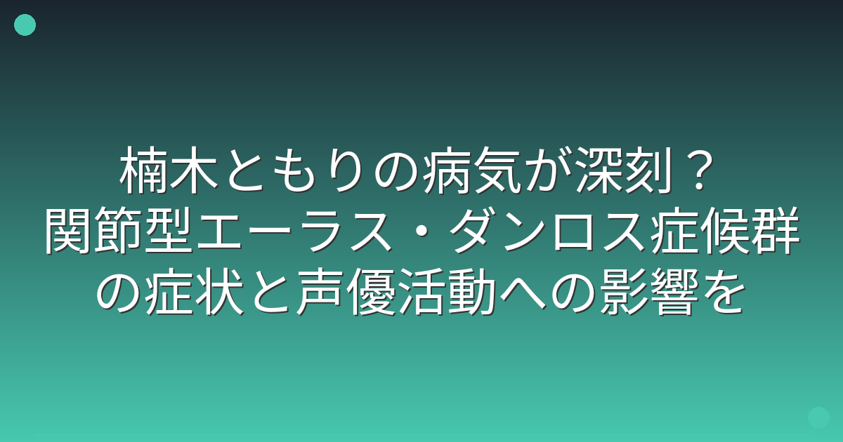 今回は、楠木ともりさんの病気である関節型エーラス・ダンロス症候群について、症状や声優活動への影響をお伝えしてきました。