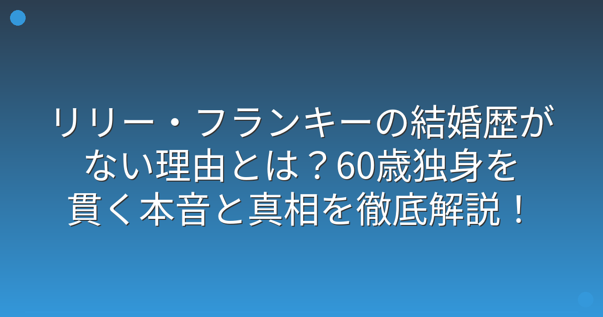 2024年3月現在も結婚歴はなく、60歳での独身生活を続けているリリーさんですが、これは決して消極的な選択ではないことが分かりました。