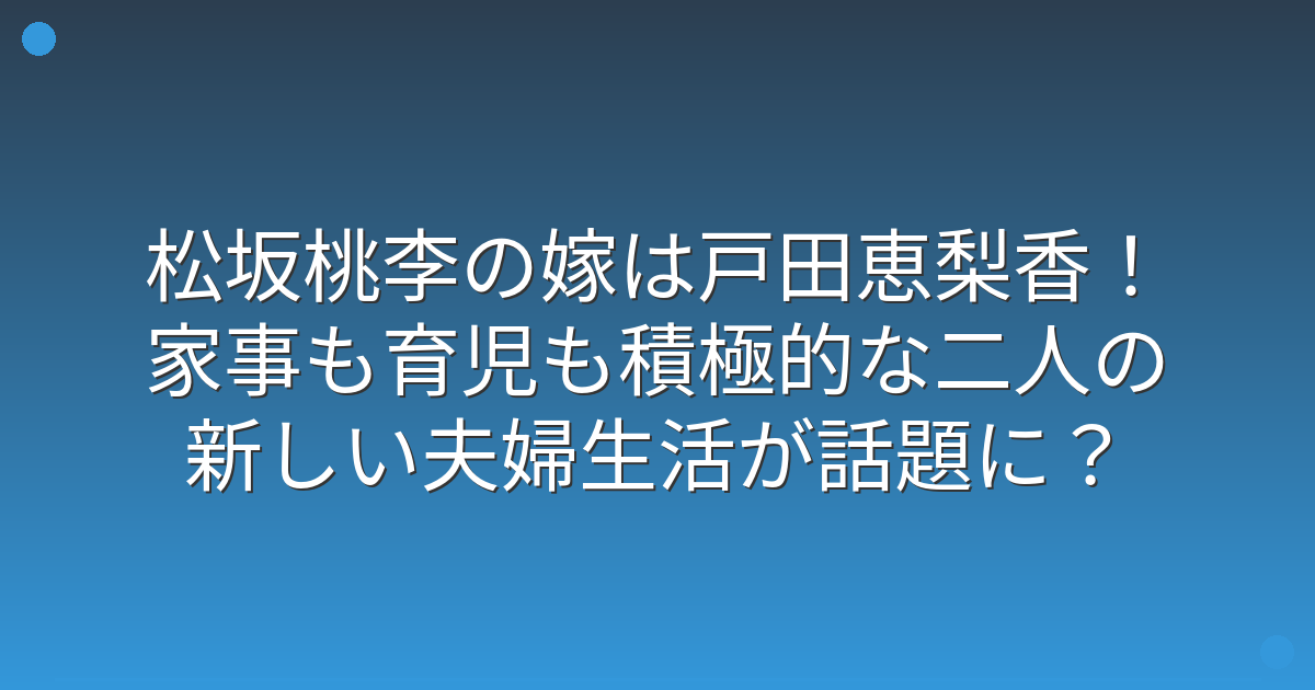 そこで今回は、松坂桃李さんの嫁である戸田恵梨香さんとの結婚生活や、二人の新しい家族の様子について詳しく見ていきましょう!
