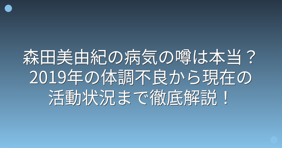 そこで今回は、森田美由紀さんの病気に関する噂や現在の活動状況について、詳しく見ていきましょう!