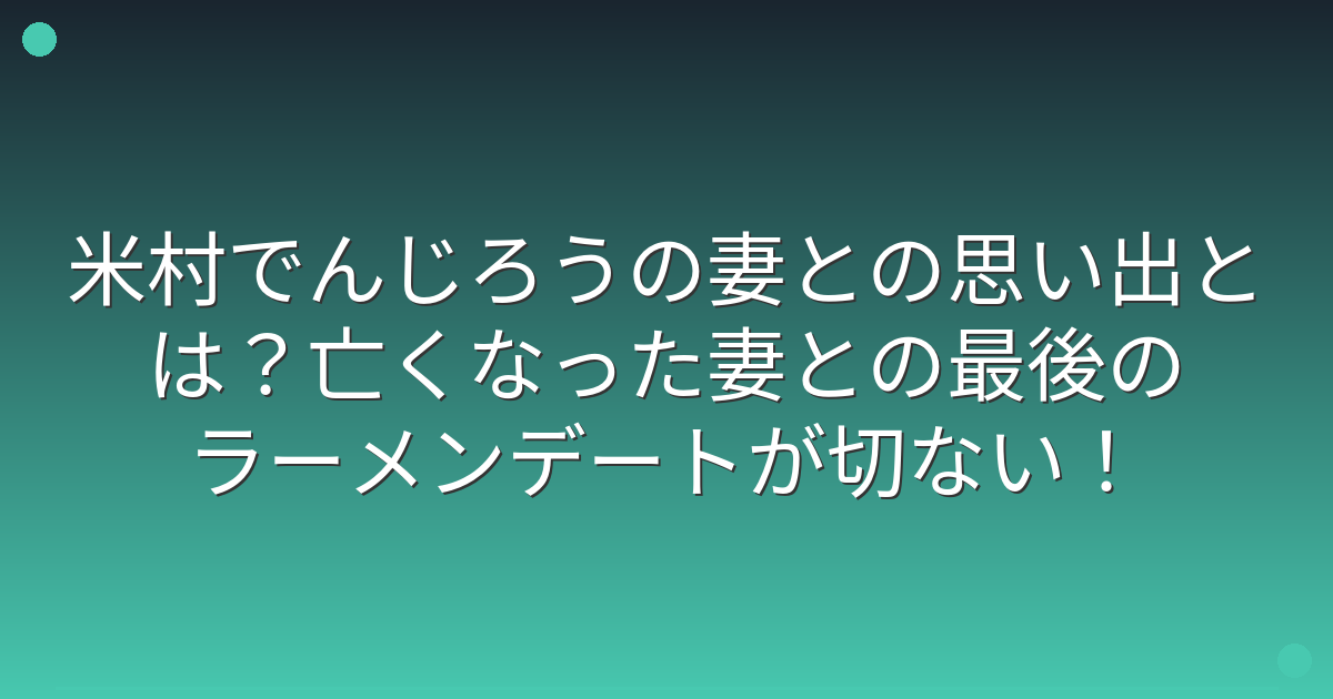 具体的な他界の時期や原因については明らかにされていませんが、米村でんじろうさんは妻との思い出を大切にしている様子が伺えます。