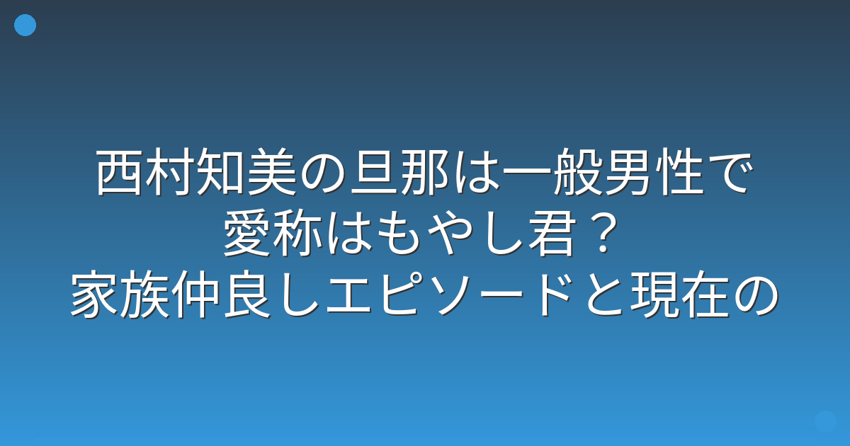 西村知美さんの旦那さんは一般男性で、過去には「もやし君」という愛称で呼ばれていたことがわかりました。