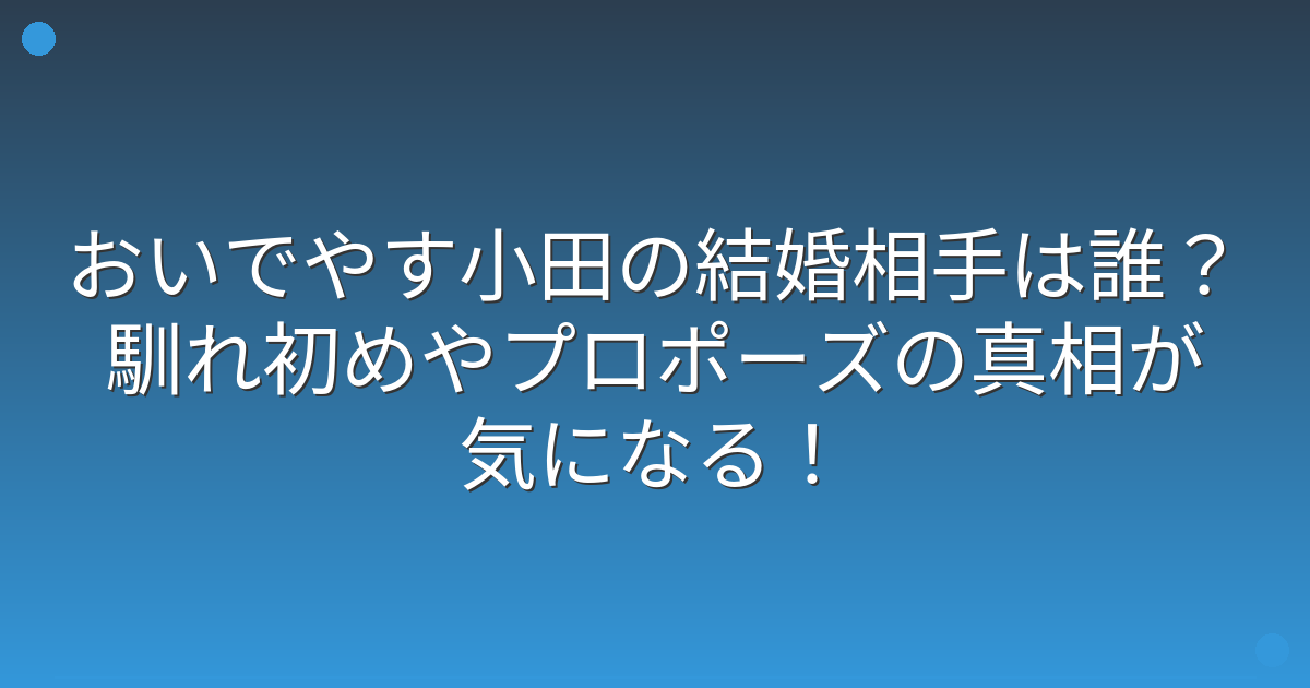 そこで今回は、おいでやす小田さんの結婚について、気になる相手や馴れ初め、プロポーズの詳細まで徹底的に解説していきましょう!