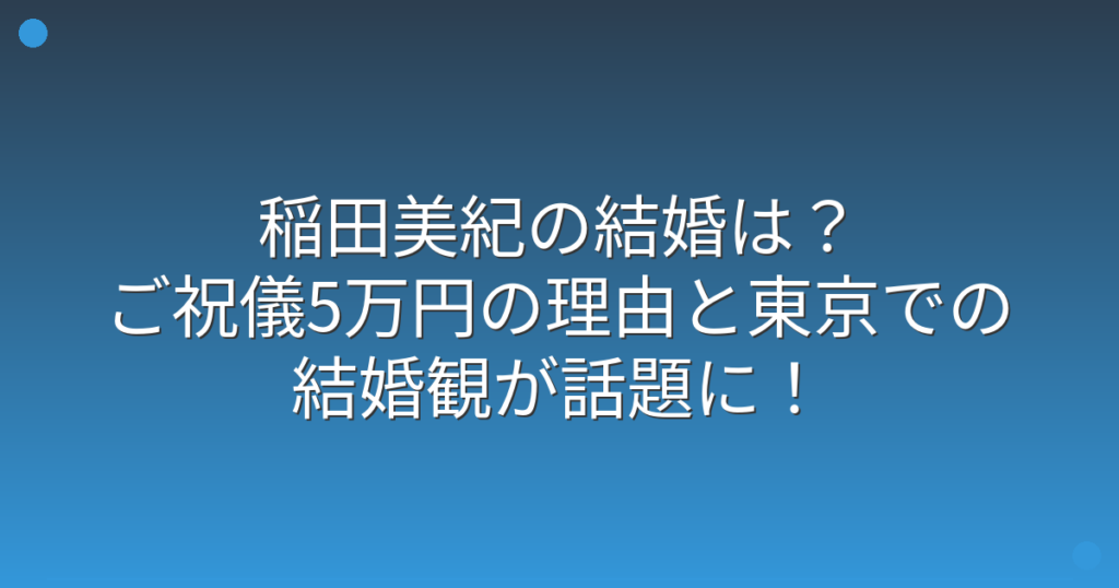 稲田美紀の結婚は?ご祝儀5万円の理由と東京での結婚観が話題に!