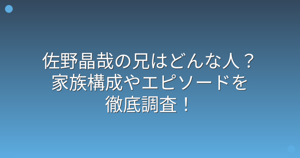 佐野晶哉の兄はどんな人?家族構成やエピソードを徹底調査!