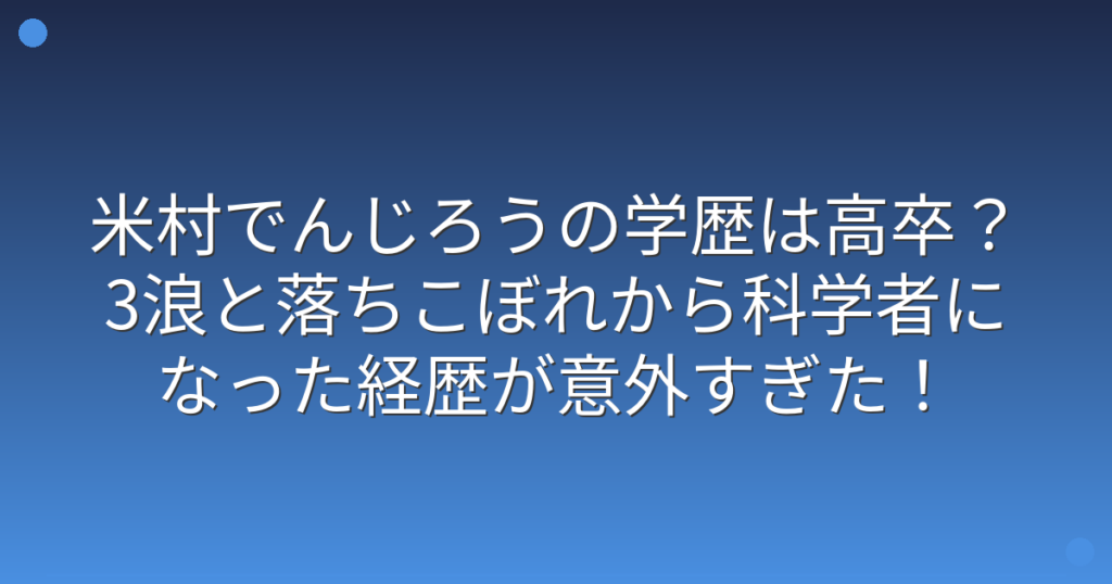科学実験のプロデューサーとして、テレビやイベントで大活躍している米村でんじろうさん。 「マッドサイエンティスト」として数々の実験を披露してきた米村でんじろうさんですが、実は学歴について意外な事実があることをご存知でしょうか? そこで今回は... -
