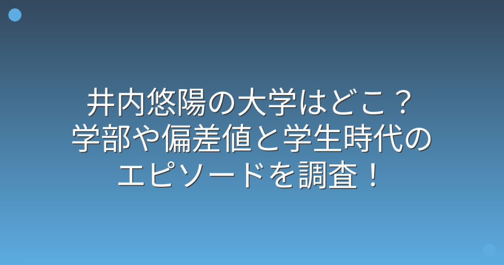 井内悠陽の大学はどこ?学部や偏差値と学生時代のエピソードを調査!