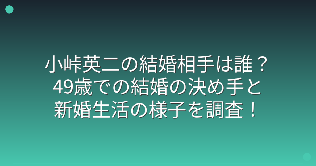 お笑いコンビ「バイきんぐ」の小峠英二さんが2025年6月に結婚を発表し、大きな話題となっていますね。 49歳での結婚ということで、多くのファンから祝福の声が寄せられました。 そこで今回は、小峠英二さんの結婚相手や結婚の決め手、そして新婚生活の様子... -