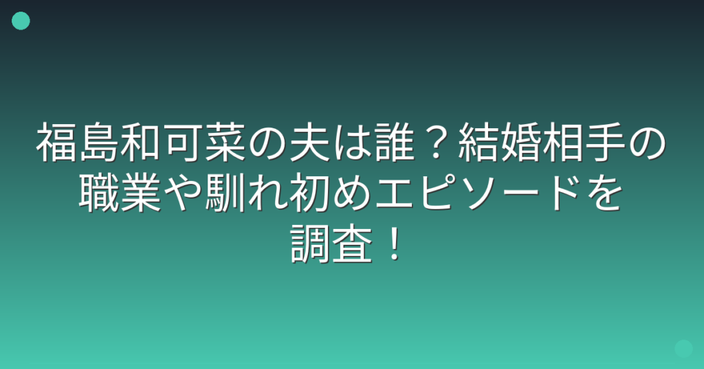 福島和可菜の夫は誰?結婚相手の職業や馴れ初めエピソードを調査!