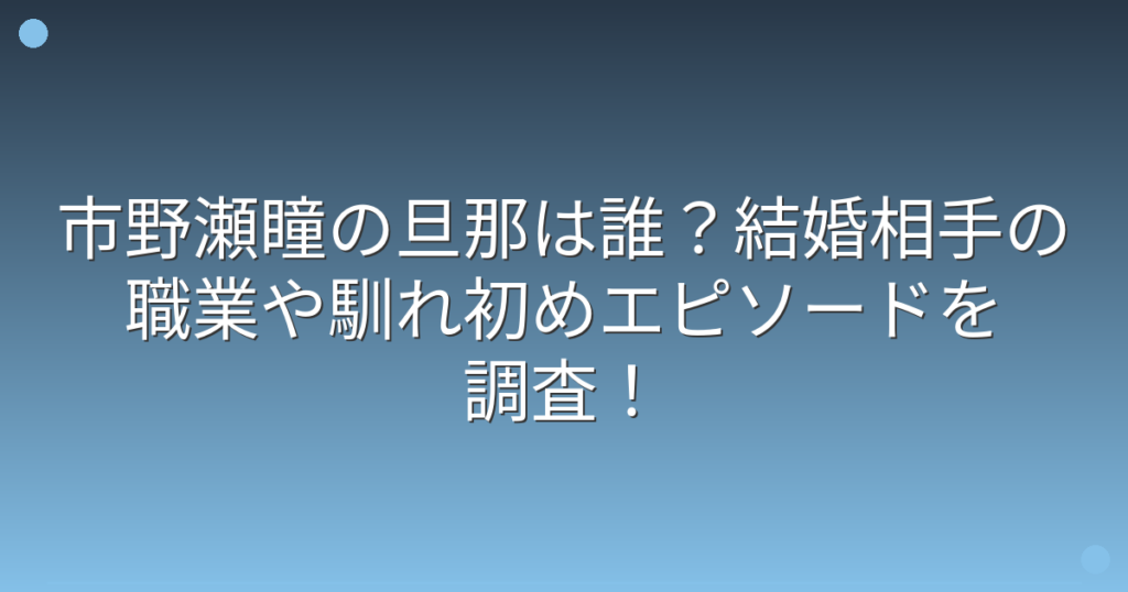 市野瀬瞳の旦那は誰?結婚相手の職業や馴れ初めエピソードを調査!