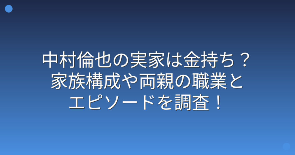 俳優として幅広い役柄をこなし、その演技力と独特の雰囲気で多くのファンを魅了している中村倫也さん。 そんな中村倫也さんの実家や家族について、気になっている方も多いのではないでしょうか。 実家がお金持ちという噂や、ご両親の職業、家族とのエピソ... -